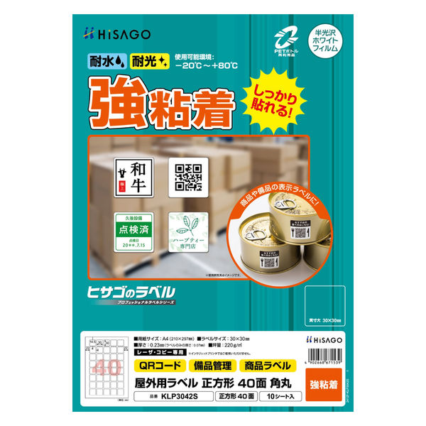 ヒサゴ 屋外用ラベル A4 正方形 40面 角丸 KLP3042S 1袋