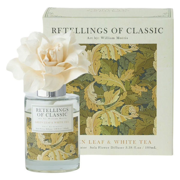 | 商品の特徴 | ソラフラワーから香りが広がるディフューザー。このディフューザーの芳香には嫌な匂いを緩和させる消臭機能が備わっています。若々しい青葉の香りとホワイトティの香りが重なり合った香り。1875年に発表されたウィリアム・モリスのアイコン的な傑作のひとつで、大柄モチーフの壁紙をデザインし始めた頃の作品です。 | ||