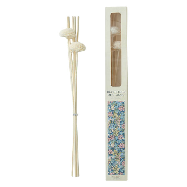 | 商品の特徴 | 別売りのディフューザーリキッドボトルに挿してご使用いただけます。スティック5本とミニソラフラワー付きスティック2本入り。1872年頃のウィリアム・モリスのデザインです。花を付けたサンザシとその葉のデザインで一面覆われた背景の上に、くねくねと曲がったジャスミンがあしらわれています。 | ||