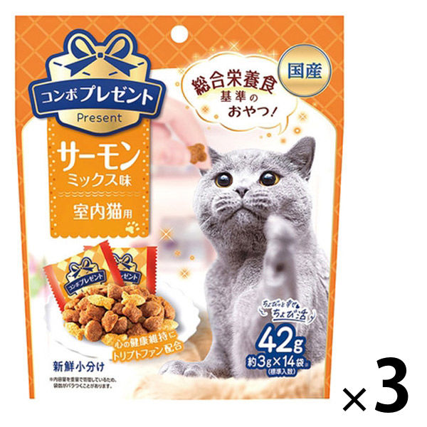 コンボ プレゼント 室内猫用 サーモンミックス味 総合栄養食 国産 42g(約3g×14袋)3袋 日本ペットフード 猫用 おやつ