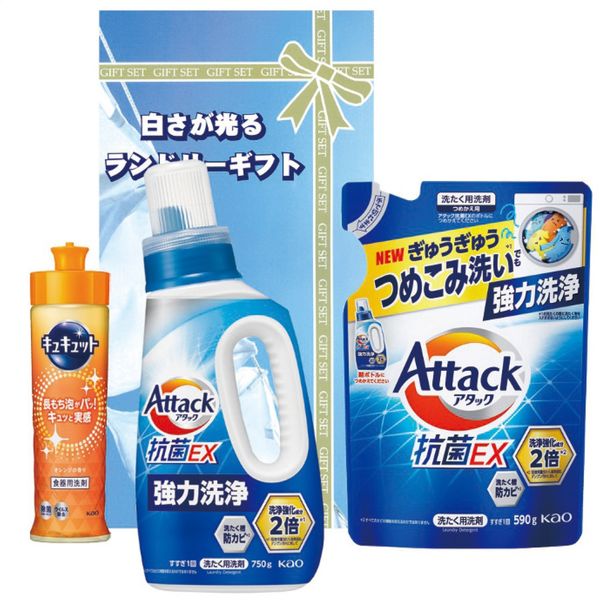 | 商品の特徴 | 抗菌も消臭も洗浄もすべて解決できるアタック抗菌EX洗剤ギフトセットです。 | ||