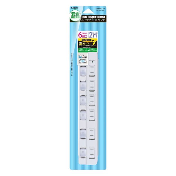 延長コ-ド 電源タップ ナカバヤシ 安全機能満載スイッチ付OAタップ 6個口 2m ホワイト TAP-048-20W 1個