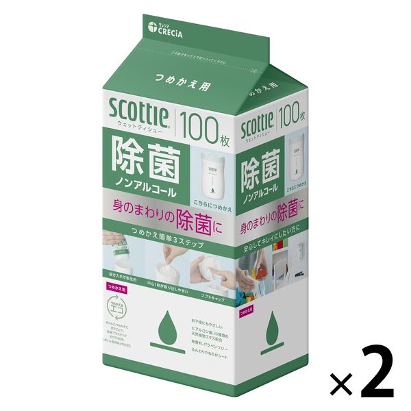 ウェットティッシュ スコッティ ウェットティシュー 除菌 ノンアルコール 100枚 つめかえ用 1セット(1個×2)日本製紙クレシア
