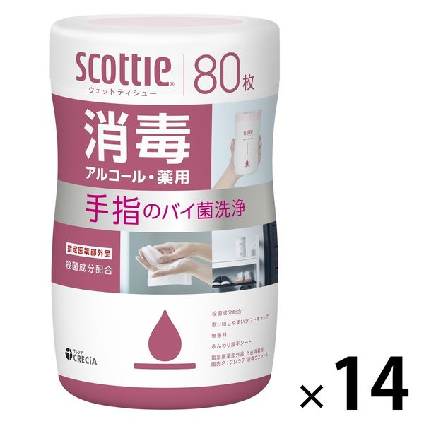 ウェットティッシュ アルコール スコッティ ウェットティシュー 消毒アルコール 80枚 本体 1セット(1個×14)日本製紙クレシア