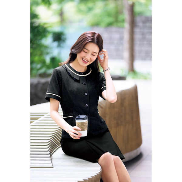 | 備考 | 【返品について】お客様のご都合による返品はお受けできません。座った時に腰回りが気にならないよう、後ろにプリーツを入れています。汗をかきやすい首周りに消臭テープ付き。爽やかなホワイトの配色ラインと、華やかな襟元のフリルがポイントのオーバーブラウスです。 | ||