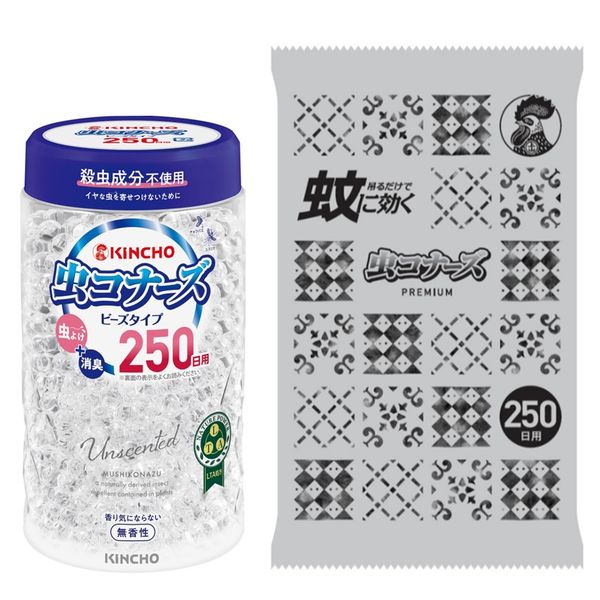 虫コナーズプレミアム 吊るす 250日 無臭 1個 + 虫コナーズ 虫除け 消臭 ビーズ 室内 置き型 250日 無香性 1個 セット 金鳥