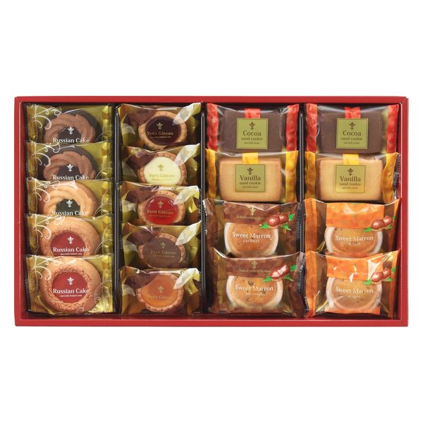 | 商品の特徴 | お茶の時間に彩を添えてくれるバラエティ豊かな焼き菓子を詰め合せた豪華なギフトです。 | ||