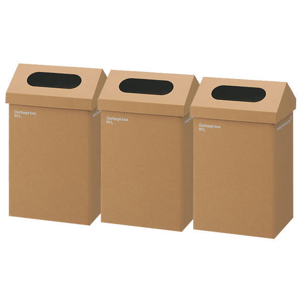 アスクル ダンボールゴミ箱 90L 無地 1袋(3枚入り) フタ付き 日本製 ダストボックス 幅460×奥行365×高さ785mm オリジナル(わけあり品)