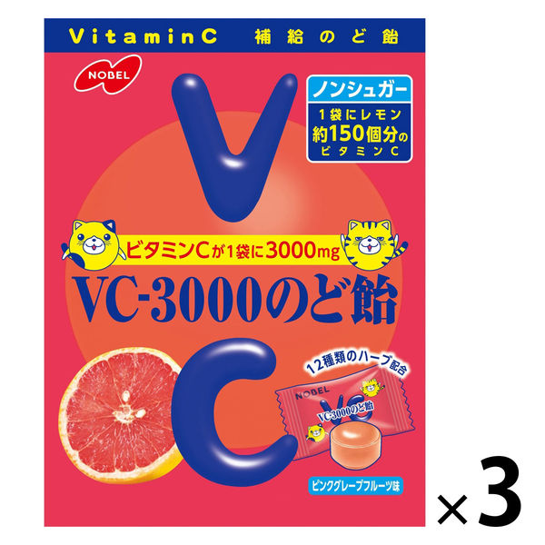 VCー3000のど飴 ピンクグレープフルーツ 90g 3袋 ノーベル のど飴 キャンディ キャンディー