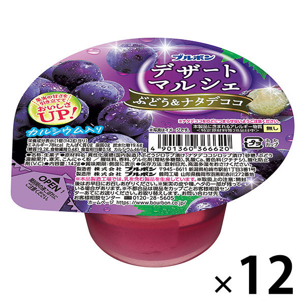 | 商品の特徴 | ぶどう果肉とナタデココが入った、デザートにちょうどいいサイズのカップゼリーです。食物繊維を配合しています。 | ||