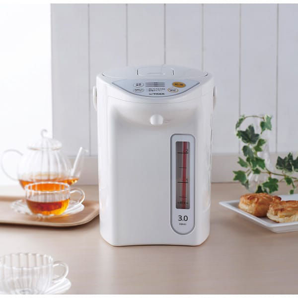 - ●電源=AC100V・消費電力=700W(湯沸し時)、440kWh(年間消費電力)●コード長約1m●容量=3.0l●省エネ・省スチーム設計●自動ロック電動給湯●3段階保温温度選択(98・90・70℃)●6時間節電タイマー●ワイドパネルの水量計付●フッ素加工内容器●付属品=マグネットプラグ