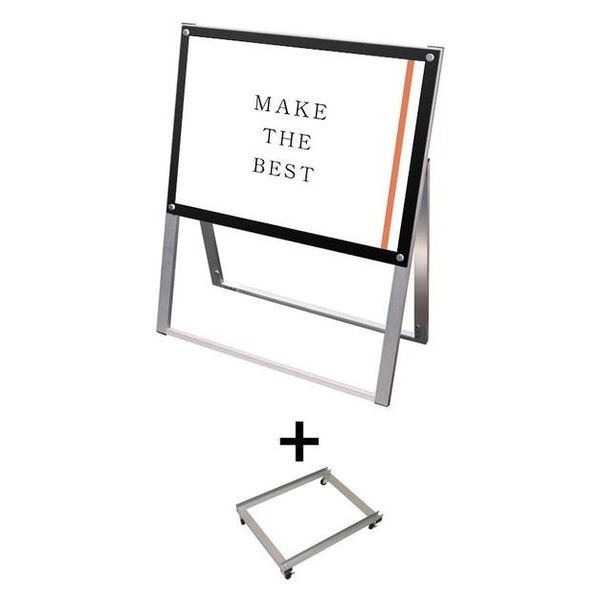 | サイズ | B2 | 材質 | 本体フレーム:アルミ押出し材/アルマイト仕上(シルバー)、面板:アルミ複合板(黒)3mm厚+アクリル板透明2mm、化粧ビス:アルミ/アルマイト仕上、アームキャスター:アルミ押出し材アルマイト仕上げ/シルバー、屋外用ゴム輪キャスター |