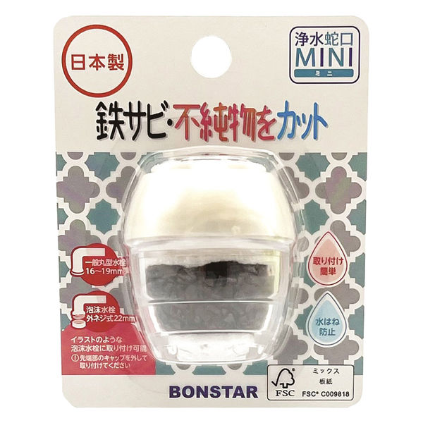 | 商品の特徴 | ・水道水に混ざる鉄サビやゴミなどの不純物を3層のろ過材でカットする浄水蛇口。開封して差し込むだけなので、取り付けが簡単。取り付けることで水流をやわらげ、水はねを防止する。・有効期限は約2か月(使い捨て)。上部フィルターが茶褐色になると取り替え時期。ただし、使用水量、水質により異なる。 | ||