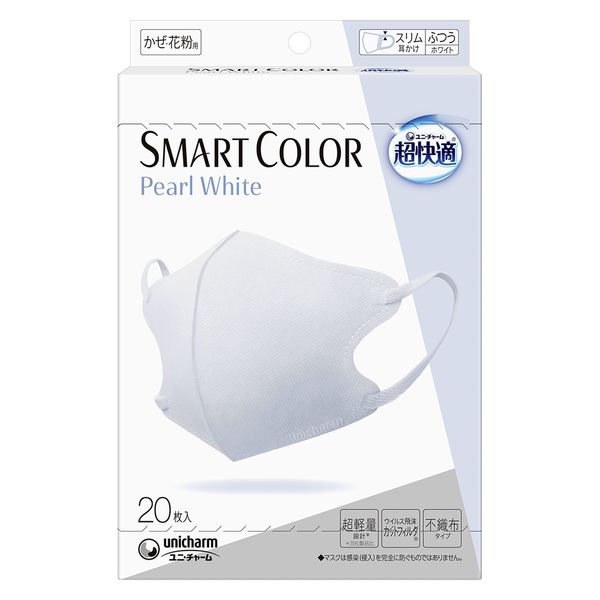 ユニ・チャーム 超快適 SMARTCOLOR パールホワイト ふつう 1箱(20枚入) 不織布マスク 立体型 JIS規格 一般用マスク適合