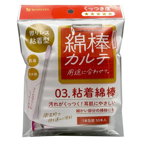 | 商品の特徴 | ●綿表面を粘着剤でコーティングしている綿棒とスタンダード綿棒の2WAYタイプ綿棒です。●耳を擦らず、ペタペタとくっつけて汚れを取ることができるから、耳に優しい綿棒です。 | ||