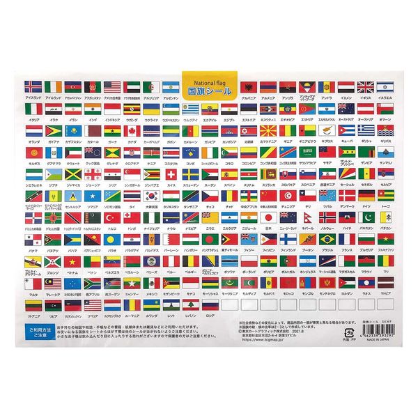 | 商品の特徴 | 世界197カ国の国旗シールです。"小さなサイズの国名と国旗のシールは、地図の上に貼り付けるのにピッタリなサイズです。"国旗は1つづつ剥がせる様になっており、国名の部分も国旗と別で剥がせる様になっています。"白地図と合わせて自由研究やオリジナル地図作りに活用しましょう! | ||