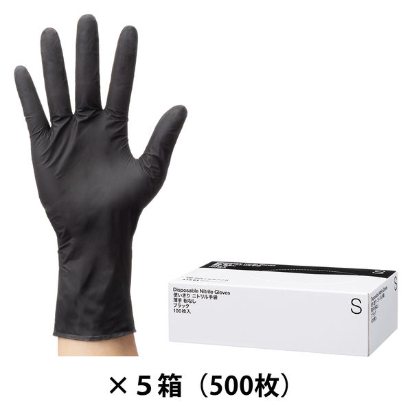 【使いきり手袋】 川西工業 現場のチカラ ニトリルディスポ ブラック 100枚入 S AK2066 1セット(1箱×5) オリジナル