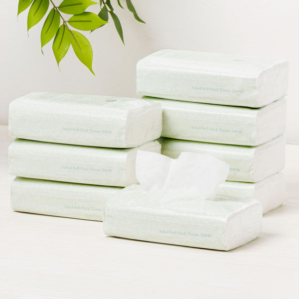 ティッシュペーパー 200枚(8個入)ソフトパックティッシュ 1パック アスクル オリジナル