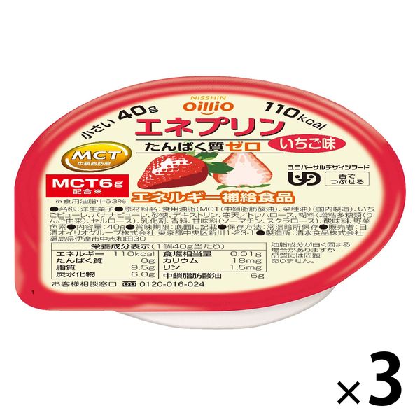 日清オイリオ MCTプリン エネプリン 介護 介護食品 やわらか食 デザート おやつ 高齢者 いちご味 3個