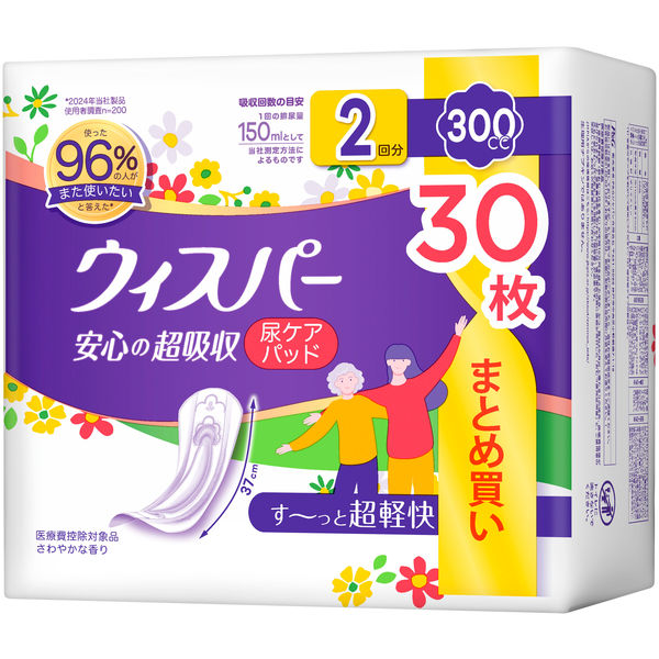 | 商品の特徴 | 使った96%の人がまた使いたいと答えた*安心の超吸収 尿ケアパッドす~っと超軽快超吸収&超消臭ぎっしり詰まった強力吸収体超スピード消臭技術超快適デザインで歩きやすい、動きやすい日中も夜も、安心安心の長さ37cm* 2024年当社製品使用者調査n=200 吸水 尿ケア | ||
