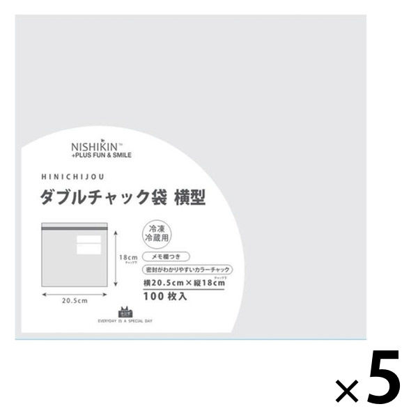 フリーザーバッグ ダブルチャック袋 横型 透明 約20.5×18cm 冷凍冷蔵用 メモ欄付き 1セット(1個(100枚入)×5)錦尚金