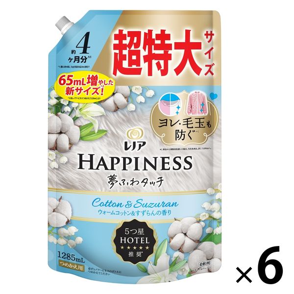 レノアハピネス 夢ふわタッチ ウォームコットン&すずらんの香り 詰め替え 超特大 1285mL 1セット(1個×6) 柔軟剤 P&G