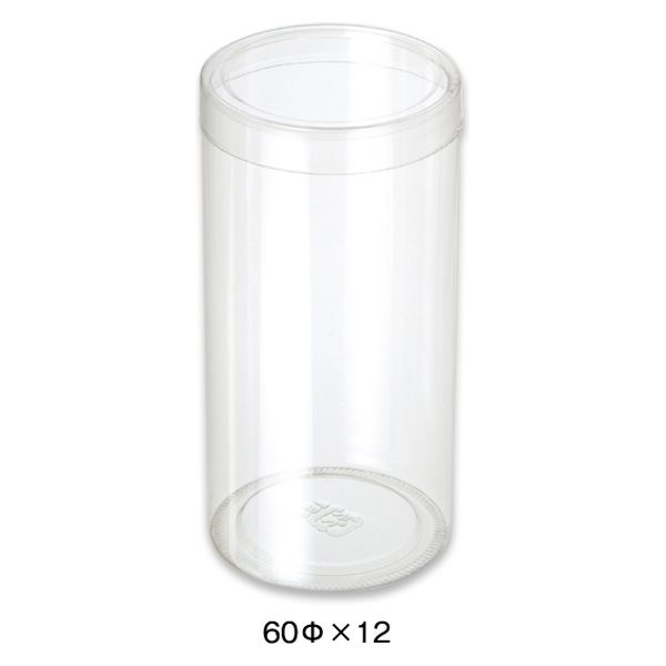 | 商品の特徴 | 焼菓子向けの透明円筒型ケースです。口部は巻き込み構造。フタ・ソコセット。 | ||