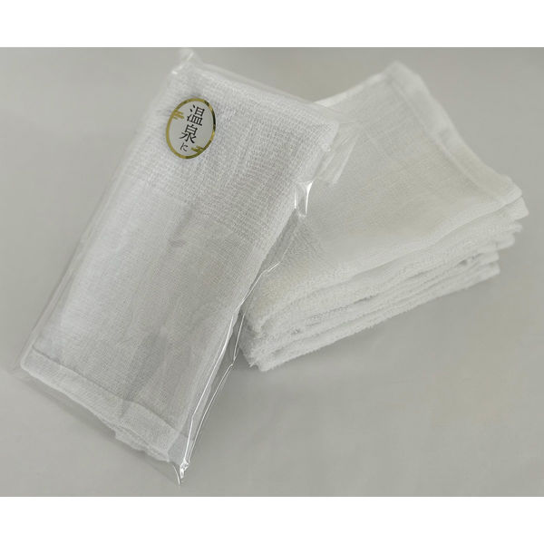 本商品:超薄手の白タオル/「温泉に」のシールを貼っています/木綿地付き120匁=約37g 401001-1P-onsen-120 1箱(120個入)(直送品)