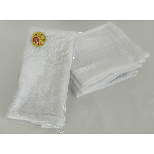 超薄手の白タオル/「夏たび」のシールを貼っています/木綿地付き100匁=約31g 401000-1P-natsu-60 1箱(60個入)(直送品)