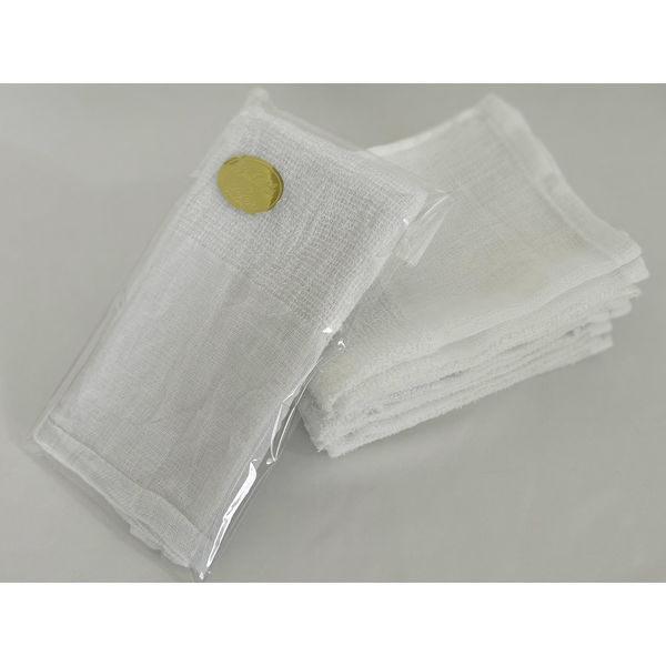 超薄手の白タオル/ゴールドのシールを貼っています/木綿地付き120匁=約37g 401001-1P-gold-120 1箱(120個入)(直送品)
