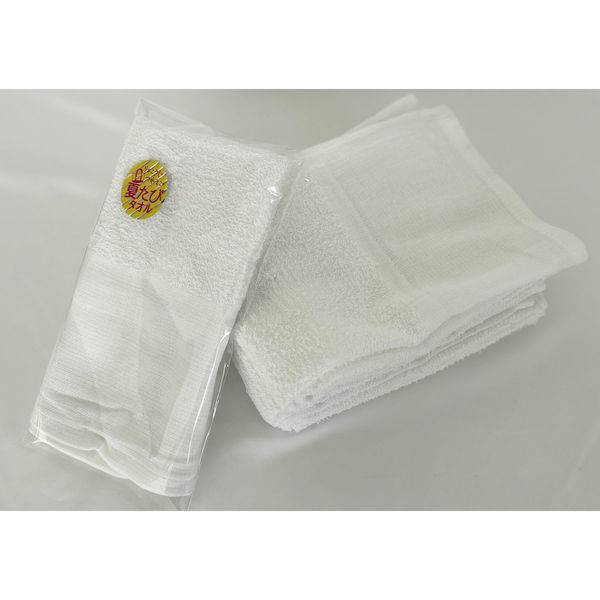 一般的な白タオル/「夏たび」のシールを貼っています/木綿地付き200匁=約62g 401005-1P-natsu-60 1箱(60個入)(直送品)