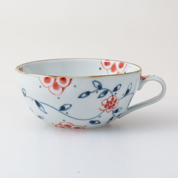 | 商品の特徴 | 伊万里で焼かれた繊細な手描きの器。口径が広く持ち手のついた碗型。スープ他、お粥やお料理の取分けのうつわとして。 | ||