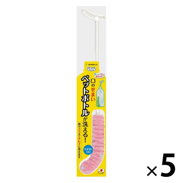 びっくりフレッシュ ピカピカ細口ボトル洗い 口の狭いペットボトルが洗える 冷水筒 洗剤いらず ピンク 日本製 1セット(1個×5)サンコー