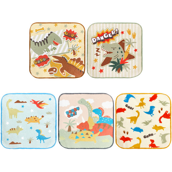 商品の特徴 子どもたちの大好きな恐竜モチーフのプチタオル。お子さまの小さなポケットにも収まる、小さめサイズ(約16×16cm)。保育園・幼稚園の入園準備に。洗い替えに便利な5枚セット。お名前を書けるラベル付き。 子供 こども キッズ 用 はんかち ハンドタオル ミニタオル 手洗いタオル 汗拭き