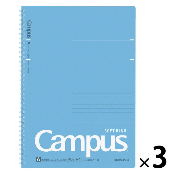 コクヨ キャンパス ソフトリングノート A4 青 スーS121ATーB 1セット(1冊×3)