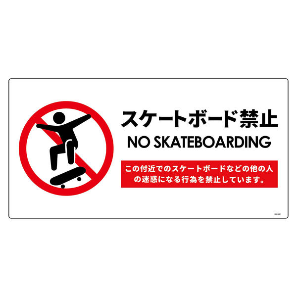 | 商品の特徴 | ●スケートボード禁止標識はシンプルでわかりやすい標識です。●和文・英文2ヶ国語の標識です。●様々な箇所に取り付けて注意を促せます。 | ||
