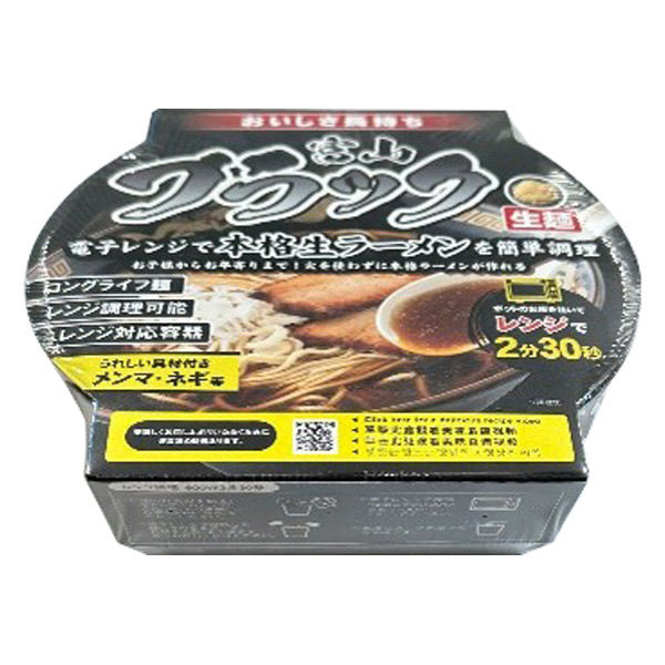 | 調理法 | 1,麺と沸騰したお湯350mlをカップに入れる2,電子レンジで加熱(600ワットで2分30秒)3,スープと具材を入れ、よくかき混ぜる4,お湯にスープが溶ければ完成 | 特徴 | 独自配合、製法で生麺のラーメンが電子レンジで時短かつ簡単に作れる |