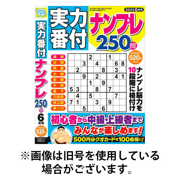 実力番付ナンプレ250問 2025/08/26発売号から1年(6冊)(雑誌)(直送品)