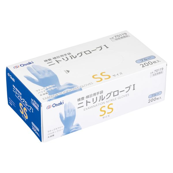 オオサキメディカル ニトリルグローブ I ブルー SS 70119 一般医療機器 粉なし 使い捨て手袋 1箱(200枚入)