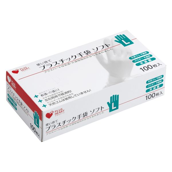 オオサキメディカル プラスハート プラスチック手袋ソフト L 透明 粉なし 使い捨てグローブ 70009 1箱(100枚入)