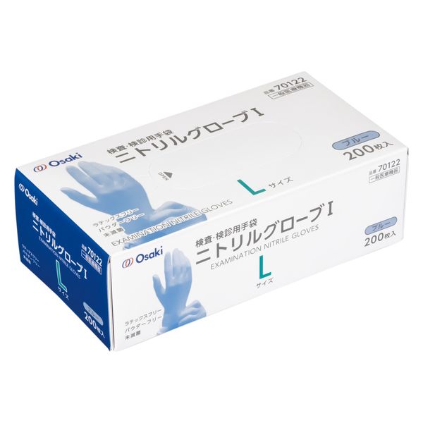 オオサキメディカル ニトリルグローブ I ブルー L 70122 一般医療機器 粉なし 使い捨て手袋 1箱(200枚入)