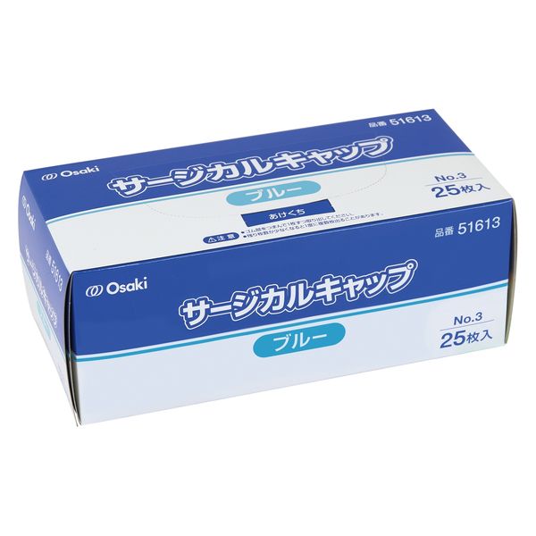 本商品:オオサキメディカル サージカルキャップ No.3 ブルー 51613 使い捨て 帽子 不織布 感染予防 1箱(25枚入) |