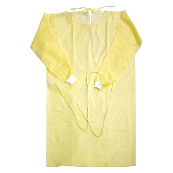 経済性に優れたPP(ポリプロピレン)不織布を使用したアイソレーションガウンです。快適なニット袖口。イエロー(黄色)。