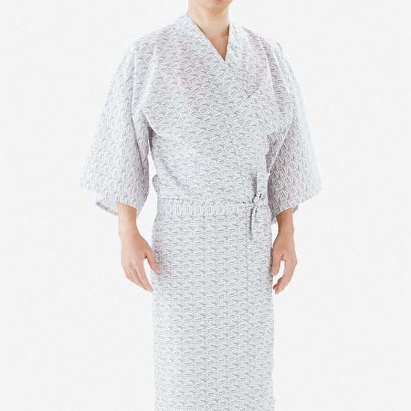 | 適応寸法 | 身長:160cm~165cm、身丈:135cm、裄丈64cm、裾まわり:144cm | 特徴 | 短期単回使用、男女兼用柄、かんたん着脱 |