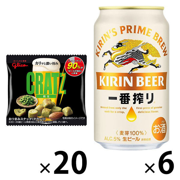 【おつまみ×ビールセット】アソート クラッツミニタイプ 枝豆 20袋&ビール 一番搾り 350ml 缶 1パック(6本)