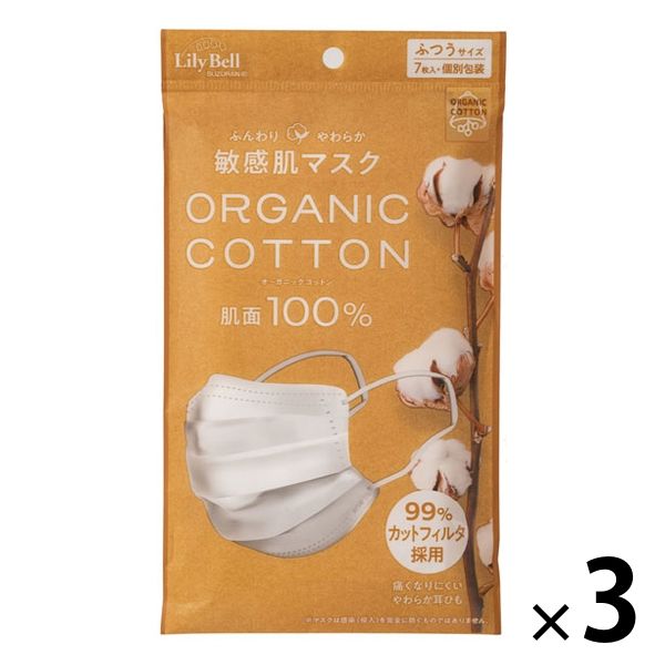 敏感肌マスク 肌面オーガニックコットン100%不織布 ふつうサイズ 1袋(7枚入)個包装 柔らか耳紐Lily Bell