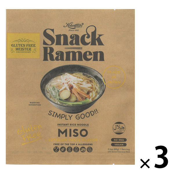 【並行輸入品】スナックラーメンみそ(粉末スープ付き/紙包装)89g 1セット(1個×3) 小林生麺
