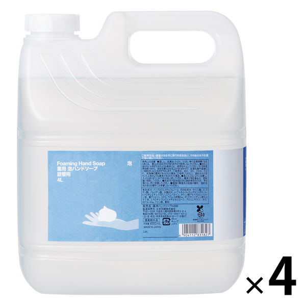 【アスクル限定】薬用 泡ハンドソープ 詰め替え 4L 1セット(4個)業務用 日本石鹸 オリジナル