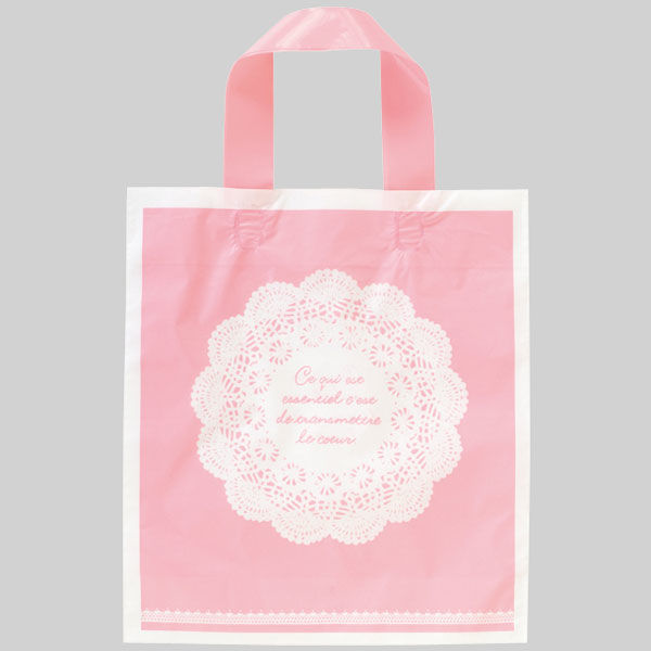 | 商品の特徴 | ピンク色とレース柄で優しい風合いのハンドルバッグです。ベビーからガーリーなものまで、幅広くお使い頂けます。母の日や女性へのギフトシーンに喜んでいただけます。 | ||