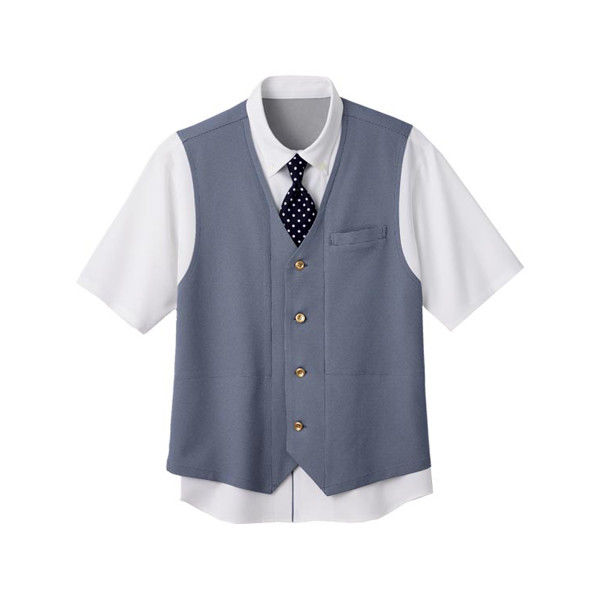 細かいチドリ柄のベストと白シャツが一体型になったアイテムで、涼しさ&見栄えもGood!シャツの裾はセパレートだから、裾のイン・アウトでイメージチェンジも簡単。